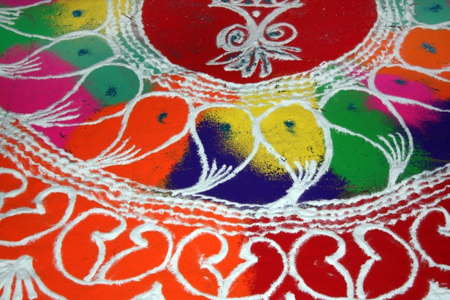 Millions of Hindus celebrate by hanging lanterns and candles around their homes and by creating colourful and intricate Rangoli patterns on their floors and entryways. These patterns are believed to be welcoming signs for the Goddess Lakshmi, who is believed to roam the Earth on Diwali night. Prayers are also offered to Lakshmi to bring wealth and prosperity to the household.